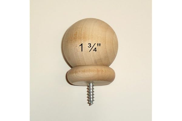 Small 1 3/4" Round Wood Ball Finial with 3/16" Wood Screw for 1" or 1 1/8" Wood Curtain Rod Ends/Wood Closet Rods/Wooden Post Caps/See Description for details and measurements.