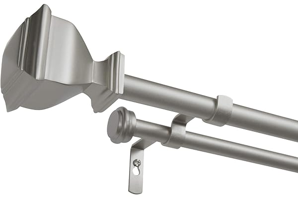 Double Curtain Rod Brackets - 1 Inch Diameter, Silver (Set of 2) (Can Also be Known as - Double Drapery Rod Bracket Set for Draperies/Adjustable Bracket for Double Curtain Rod)