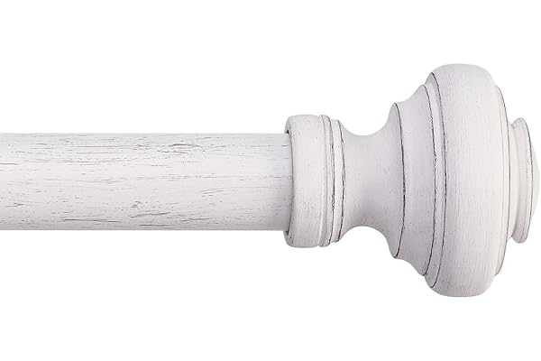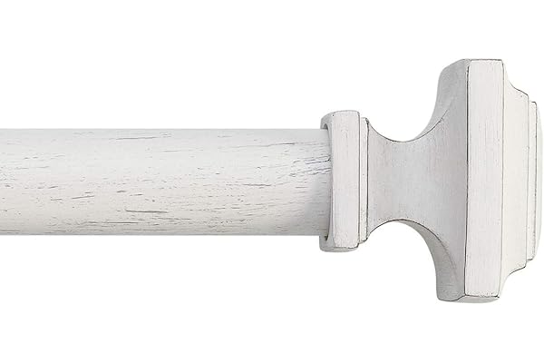 MODE Farmhouse Collection 1 1/8" Diameter Curtain Rod Set with Cottage Square Curtain Rod Finials and Steel Wall Mounted Adjustable Curtain Rod