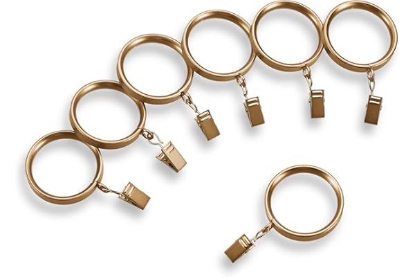Set of 14 Curtain Rings with Clips, Rings with Clips for Curtains, Fits MODE Premium and Acrylic Curtain Rods, 1 5/8”, Warm Gold