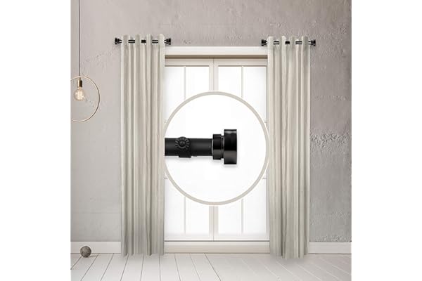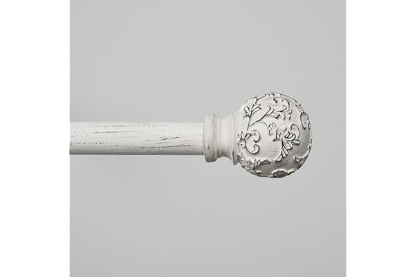 MODE Farmhouse Collection 1 1/8" Diameter Curtain Rod Set with Porch Doorknob Curtain Rod Finials and Steel Wall Mounted Adjustable Curtain Rod