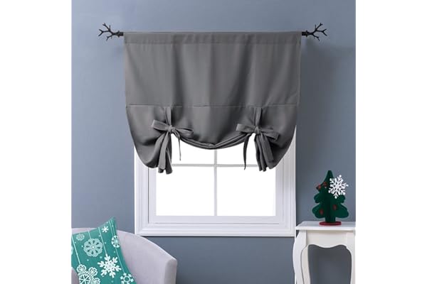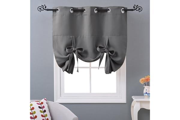 Bathroom Curtain Gray Tie Up Shade for Small Window, Window Valance Balloon Blind (Rod Pocket Panel, 46 inches W x 63 inches L)