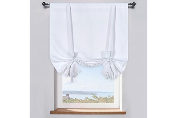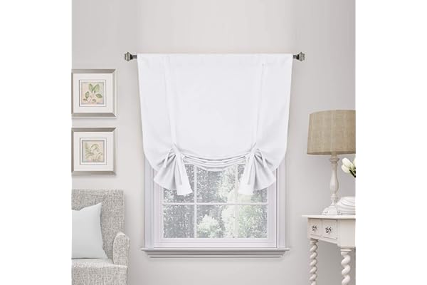 H.VERSAILTEX Pure White Curtain Thermal Insulated Tie Up Window Shade Light Blocking Curtains for Bathroom