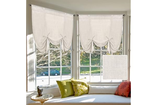 Bathroom Window Curtain Small Ballon Shade Valances for Kitchen Linen Look Semi-Sheer Decorative, 42 inches x 45 inches, White, 1 Piece
