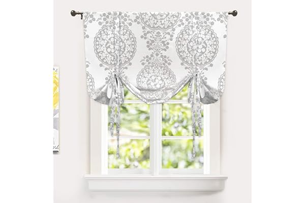 DriftAway Samantha Tie Up Curtain Floral Damask Pattern Room Darkening Thermal Insulated Adjustable Balloon Curtain Shade for Small Window Rod Pocket 1 Panel 45 Inch by 63 Inch Gray