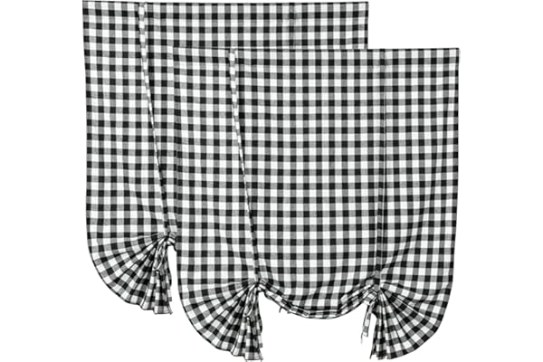 2 Pack Buffalo Check Plaid Tie Up Shades Farmhouse Style Gingham Rod Pocket Window Curtain for Kitchen 42x63 Inches White and Black (White and Black)