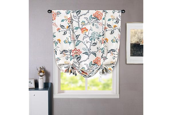DriftAway Ada Botanical Print Lined Flower Leaf Tie Up Curtain Thermal Insulated Privacy Blackout Window Adjustable Balloon Curtain Shade Rod Pocket Single 39 Inch by 55 Inch Ivory Orange Teal