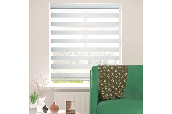 ShadesU Blinds for Windows Dual Layer Zebra Roller Shades Light Filtering Sheer Window Treatments Privacy Light Control for Day and Night (Maxium Height 72inch) (White Color) (Width 34inch)