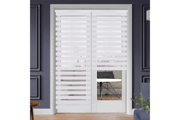 French Door Blinds Roller Dual Shades Light Control Window Treatments Horizontal Day and Night Sheer, 25.6" W x 90" H, White