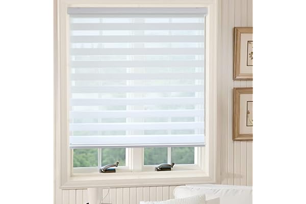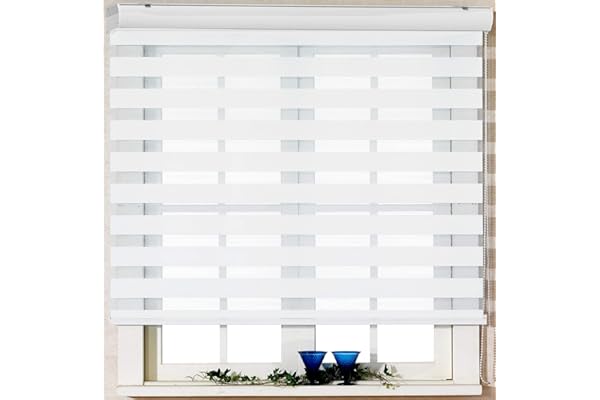 ShadesU Blinds for Windows Dual Layer Zebra Roller Shades Light Filtering Sheer Window Treatments Privacy Light Control for Day and Night (Maxium Height 72inch) (White Color) (Width 34inch)
