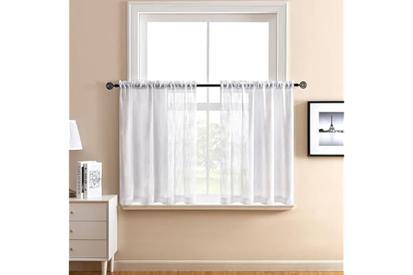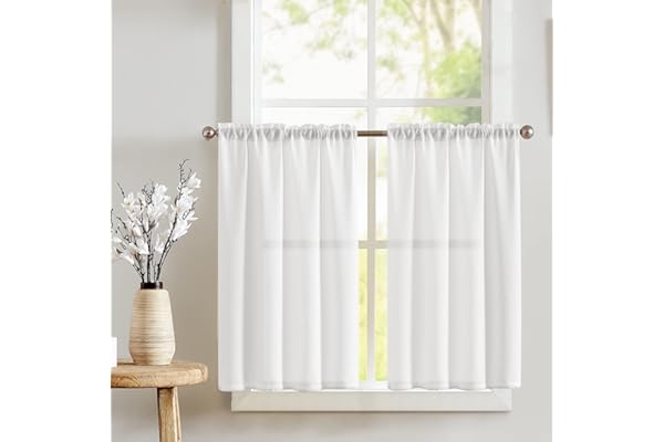 MRTREES White Sheer Curtains 34 x 36 inch Length Kitchen Tier Short Curtains Rod Pocket Sheers Cafe Curtains Voile Bathroom Small Half Window Curtains 2 Panels