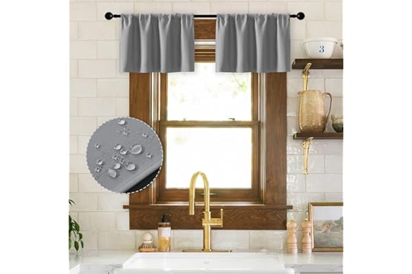 Waterproof Room Darkening Heat Light Blocking Blackout Kitchen Curtains and Valances Set of 2 Pack,30 x 16 Inches Long,Gray