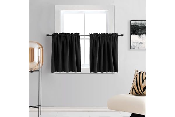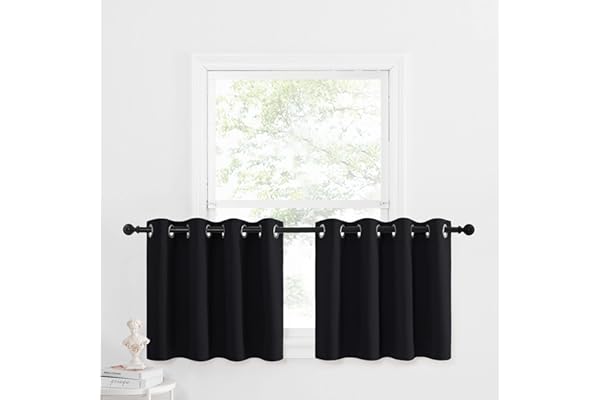 DONREN 30 Inch Length Curtains Vlances- 2 Panels Blackout Thermal Insulating Small Curtain Tiers for Bathroom with Rod Pocket (Black,30 Inches Wide by 30 Inches Long)