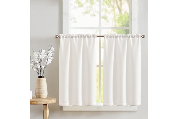 JINCHAN White Kitchen Curtains 24 Inch Tier Curtains for Living Room Linen Textured Cafe Curtains for Bathroom Farmhouse Country Light Filtering Short Window Curtain Set Rod Pocket 2 Panels