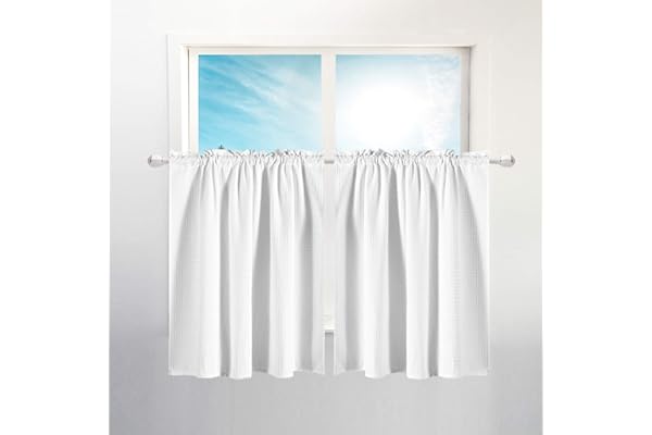Valea Home Waffle Weave Textured Bathroom Window Curtains Water Repellent Short Curtains Window Covering Half Window Curtains Kitchen Tiers