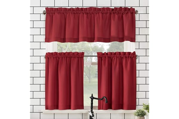 No. 918 Martine Microfiber Semi-Sheer Rod Pocket Kitchen Curtain Valance and Tiers Set