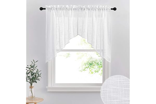 Short Kitchen Curtains and Valances Set, Privacy White Linen Sheer Swag Curtains, Semi Sheer Bathroom Curtains Tiers for Small Window, Wide 36 x Long 36 inch, 1 Pair