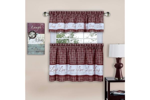 Printed Tier & Valance Set - 58x36 - Burgundy