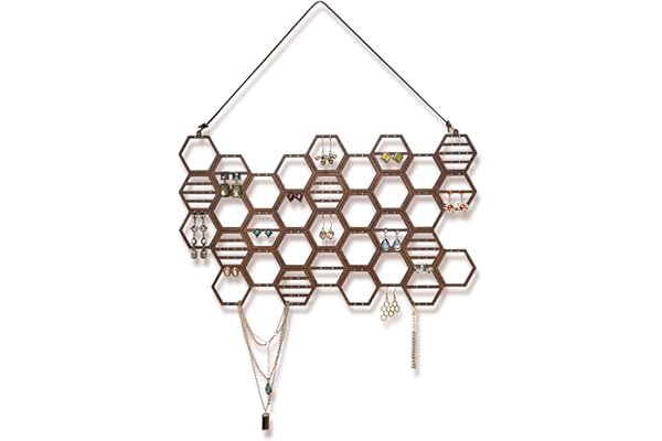 Heesch Hanging Earring Holder Honeycomb Earring Organizer Wall Mount Earring Display Wood Hanging Jewelry Organizer for Stud Earrings