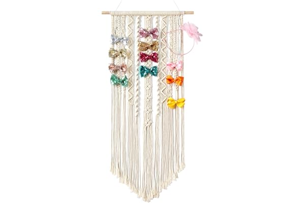 Mkono Macrame Hair Bow Holder Hanging Hair Clips Hanger Headband Storage Organizer Boho Wall Decor Bow Organizer for Baby Girls Room