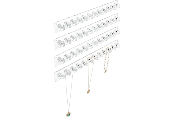 Acrylic Necklace Organizer Wall Mount Necklace Holder, Jewelry Hooks for Necklaces, Bracelets, Chains (4-pack Clear)
