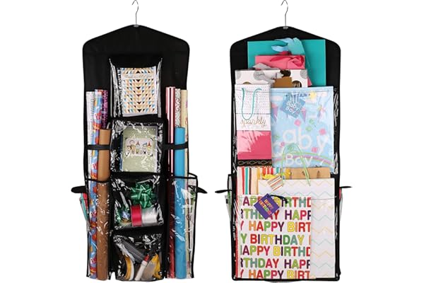 Regal Bazaar Double-Sided Hanging Gift Bag and Gift Wrap Organizer (Black)