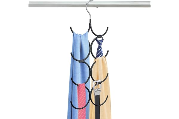 No Snag Belt Rack Tie Hanger Sturdy 8 Hook Space Saving Closet Accessory Organizer for Scarves, Ties, Belts, Shawls, Pashminas and Jewelry (1, Black)