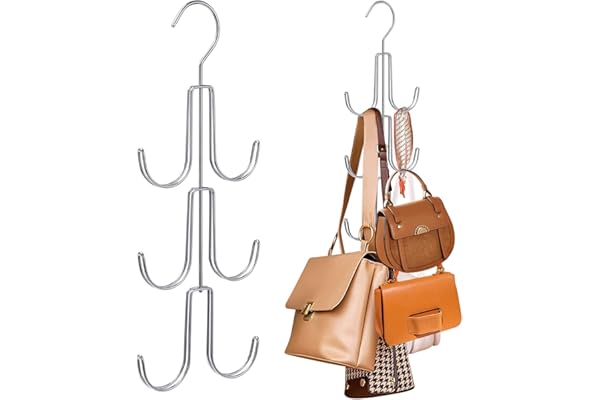 2Pack Purse Hanger Organizer for Closet Handbag Silver Metal Holder
