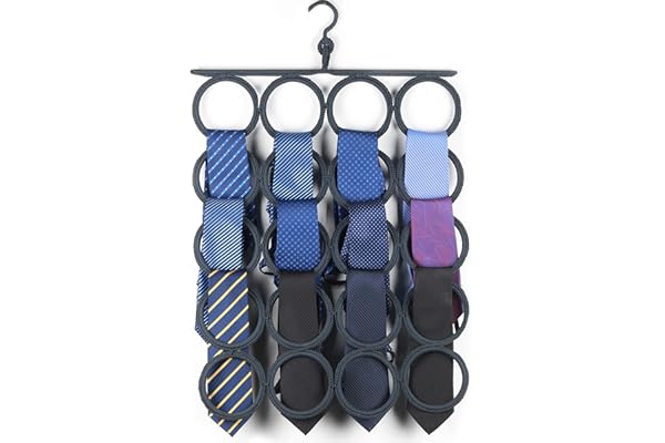 Space-Saving Scarf Organizer, Hanger Scarf for Hijab Organizer, Classic Lifestyle for Belt, Tie or Accessories for Men (Dark Blue - 28 Rings)