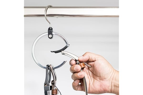 Bonus Stainless Steel Tie Clip Set, Includes J Hooks for Wired Shelving Stores Up To 72 Ties with 8 Belts, Rotation Operates With Batteries