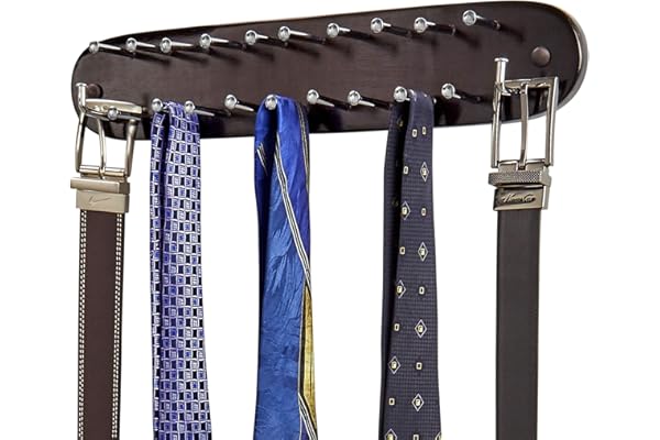 Umo Lorenzo Premium Wooden Necktie and Belt Hanger, Walnut Wood Center Organizer and Storage Rack with a Non-Slip Finish