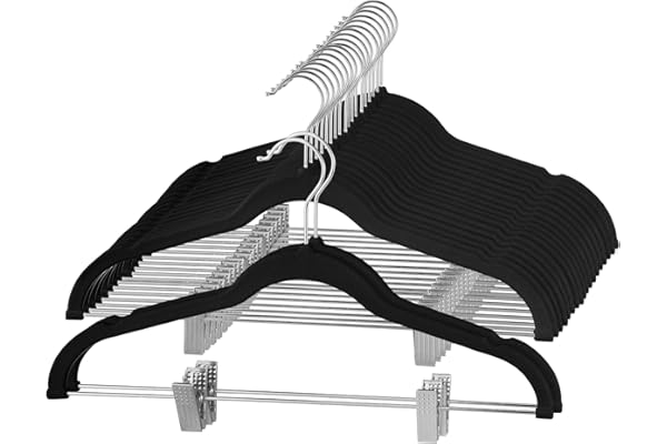 HOUSE DAY Velvet Skirt Hangers 24 Packs Velvet Hangers with Clips Ultra Thin Non Slip Velvet Pants Hangers Space Saving Clothes Hanger (Black)