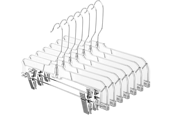 HOUSE DAY 12 Pack 14 inch Clear Plastic Skirt Hangers with Adjustable Clips