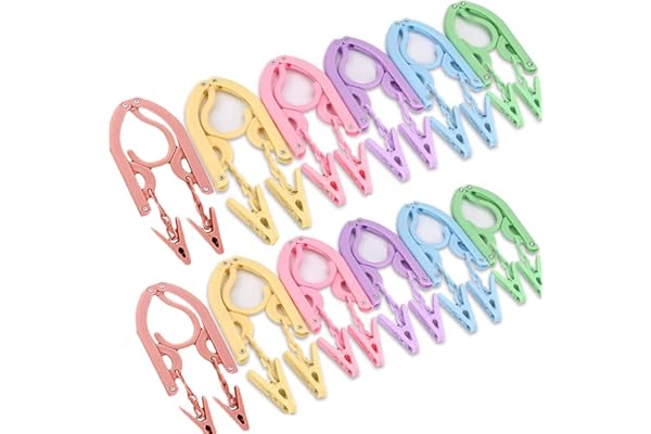 YOUOWO Travel Hangers with Clips Portable Folding Clothes Hangers 12 pcs with 24 pcs Hanger Clips for Scarves Suits Trousers Pants Shirts Socks Underwear Travel Home Foldable Clothes Drying Rack