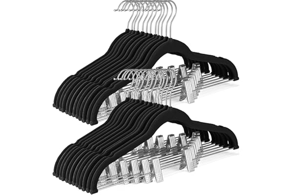 Cozymood Velvet Skirt Hangers 24 Packs Velvet Hangers with Clips Ultra Thin Non Slip Velvet Pants Hangers Space Saving Clothes Hanger for Trouser