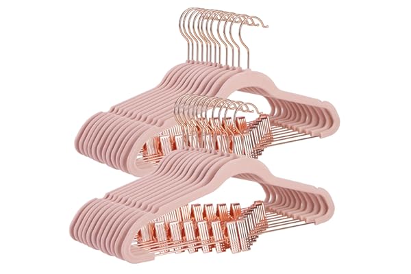 16.7 Inch Coat Hangers with Rose Gold Colored Movable Clips, Heavy-Duty, Non-Slip, Space-Saving, for Pants, Skirts, Dresses, Light Pink UCRF14PK24