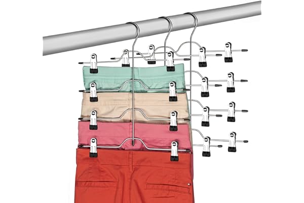 Sharpty Pant Hangers, Skirt Hangers for Everyday Use, Pant Hanger with Adjustable Metal Clips, Skirt & Pant Hangers Good for Jeans, Underwear, Socks, Etc