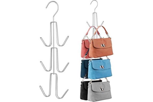 2 Pack Hanging Bag Holder, Keeping Purses Visible and in Good Condition, Metal Handbag Storage Hook Backpack Rack Space Saving Hanger, Silver