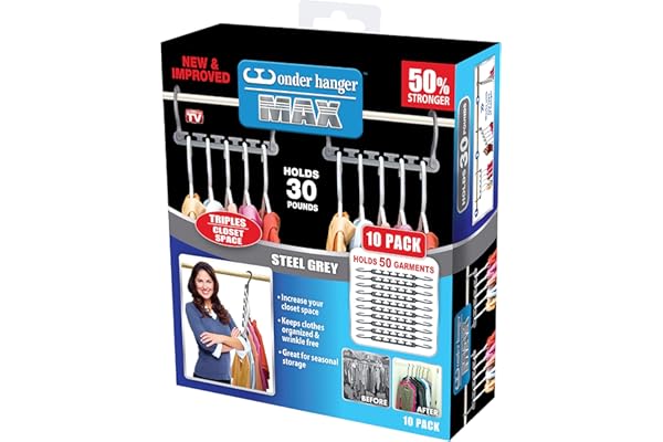 Triples Clothes-Hanger Space for Easy, Wrinkle-Free Clothes, Closet Organization Hangers, Space-Saving Solution, Fully Assembled, Pack of 10, Grey