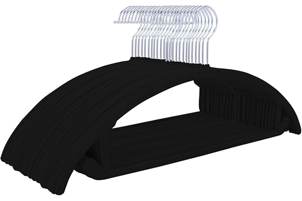 Amazon Basics Slim, Velvet, Non-Slip Suit Clothes Hangers, Black/Silver