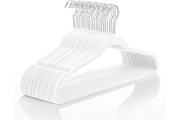 Non Slip - Velvet Suit Hangers White - Chrome Hooks,Space Saving Clothes Hangers (White/Silver, 50-Pack)