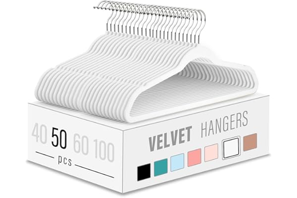 Velvet Clothes Hangers (50 Pack) Heavy Duty Durable Suit Hanger Vibrant Color Hangers Lightweight Space Saving Coat Hangers for Closet -White