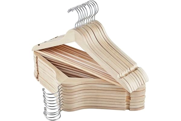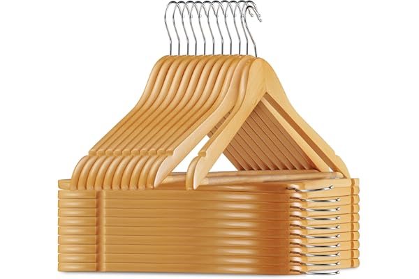 Wood Coat Hangers with Extra Smooth Finish, Precisely Cut Notches and Chrome Swivel Hook, Wooden Clothes Hangers for Shirt Suit Jacket Dress