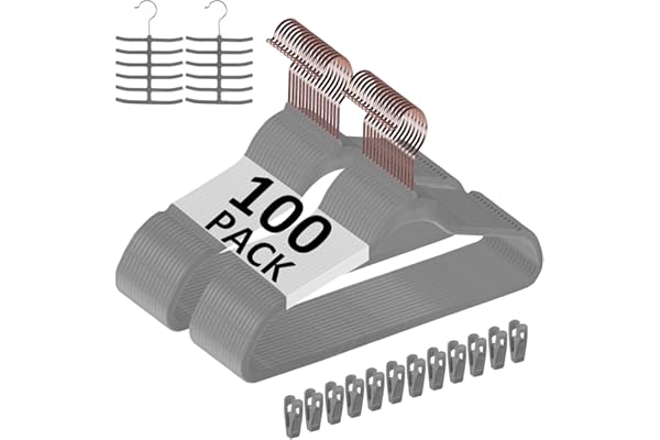 VECELO Premium Velvet Clothes Hangers Suit Heavy Duty (100 Pack)-Non Slip & Space-Saving with 12 Finger Clips & 2Tie Rack Excellent for Men and Women