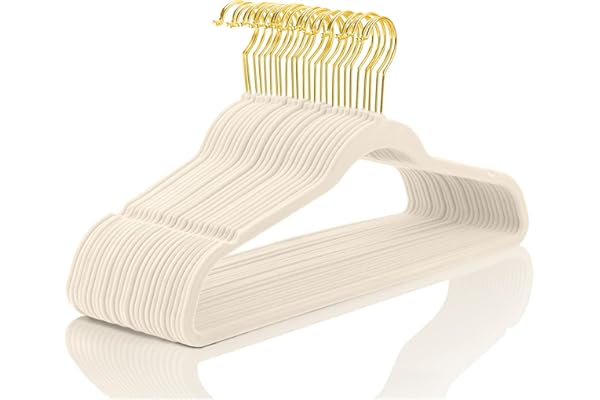 Non Slip Slimline - Velvet Suit Hangers Ivory - Gold Hooks,Space Saving Clothes Hangers