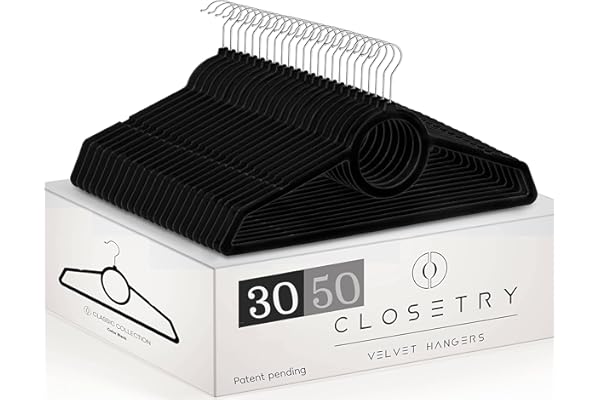 Extra Sturdy Hangers, Velvet Hangers, (50/30 Pack) Non-Slip Hanger, Strap Holder Notch, Belt, Tie, and Scarf Loop, Suit Hanger, Dress Hanger, Shirt Hanger, Coat Hanger, Black/Ivory,