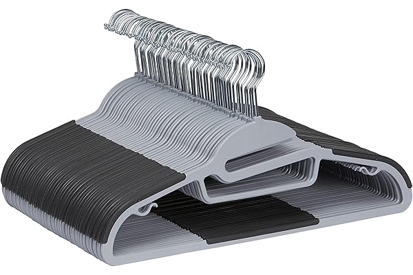 50-Pack No Shoulder Bumps Suit Hangers Ultra Thin Space Saving 360 Degree Swivel Heavy Duty Hook Durable Hangers for Sweaters,Coat,Jackets,Pants,Shirts(Gray)