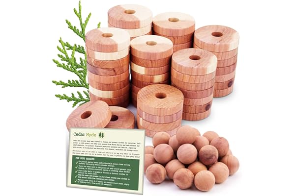 Cedar Balls & Cedar Rings | Closet Deodorizer | Clothes Protection & Mustiness Prevention | 40 Pieces, 30 Cedar Rings & Bonus 10 Cedar Balls, U.S.A Seller