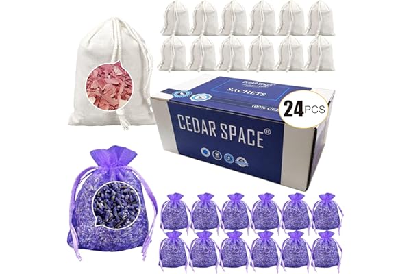 Cedar Sachets 12-Pcs Lavender Sachets 12-Pcs, 100% Aromatic Red Cedar Accessories for Wardrobes Closets and Drawers