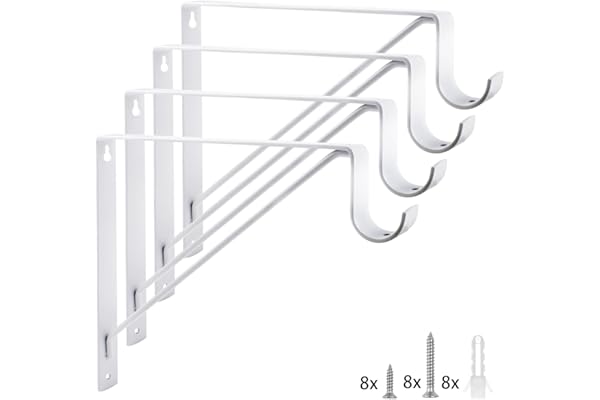 Eau 4 Packs of White Heavy Duty Closet Shelf and Rod Bracket